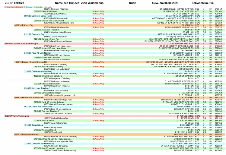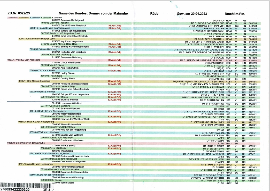 ZB.-NR. 0701/23   gew. 6.4.2023 D1, S1, VGP 1(ÜF), HN, HD A2, OCD frei, Stockmaß 64 cm
