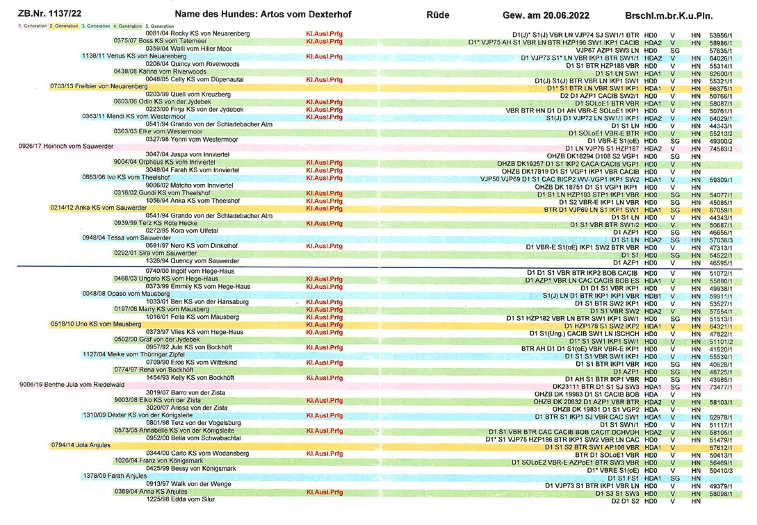 Gew. 20.06.2022, D1, S1, VGP1, HN, Btr., Formwert sg, Stockmaß 66 cm, HD A/1 beidseitig frei. OCD-frei, Übergangswirbel frei,